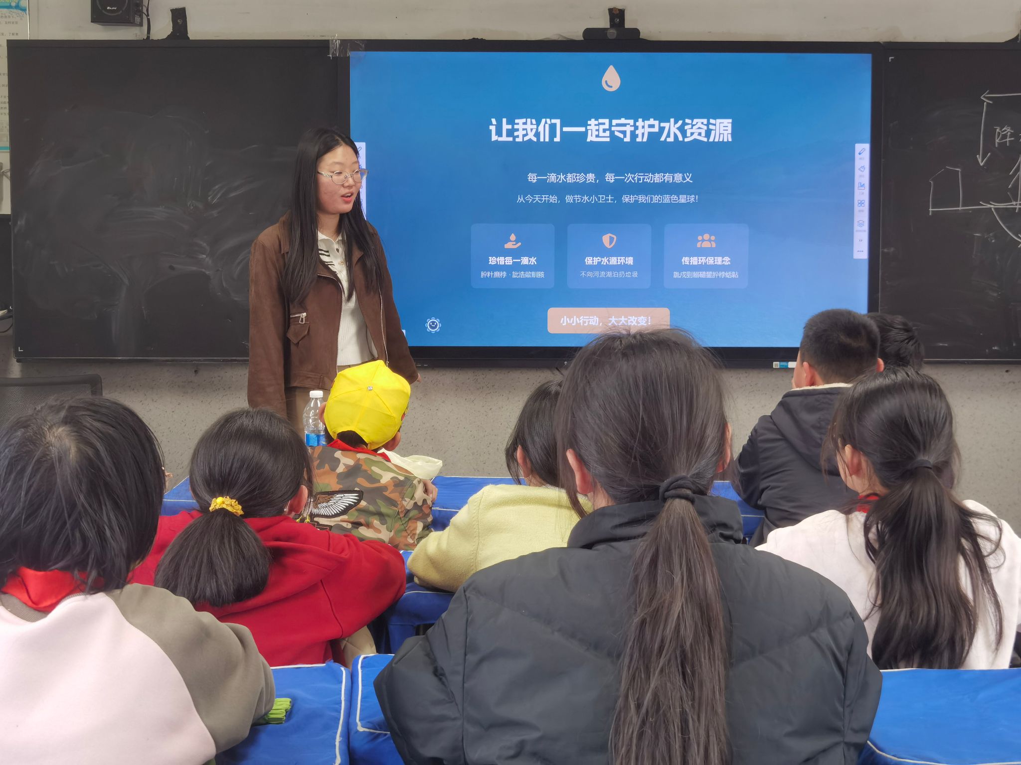 活动伊始,志愿者以生动的科普讲解拉开序幕。从“水是生命之源”的核心主题切入,用通俗易懂的语言,细致讲解水对人类生存、动植物生长的重要意义,让孩子们深刻认识到水与万物生活的紧密联系。随后,志愿者结合专业数据,向同学们揭秘地球水资源分布现状:地球表面虽七成被水覆盖,但可直接利用的淡水资源仅占总水量的0.3%,这一稀缺数据让孩子们直观感受到水资源的珍贵。紧接着,志愿者通过触目惊心的案例与真实数据,介绍工业废水、生活污水等常见污染源,详细讲解水污染对人体健康、生态环境造成的危害,一步步引导同学们树立珍惜水资源、防范水污染的意识,科普内容层层递进、通俗易懂。