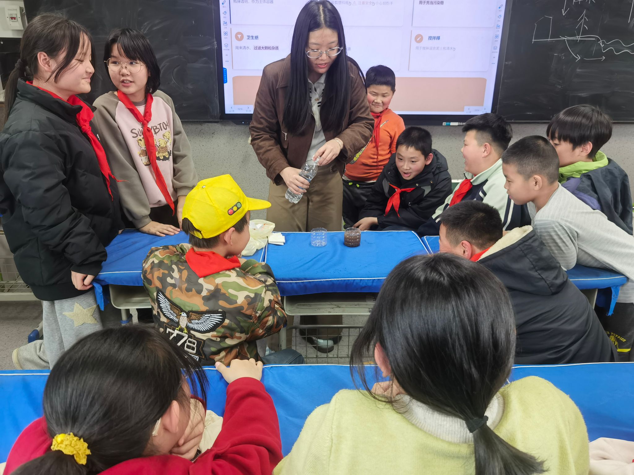 成果展示环节,同学们踊跃展示实验成果,争相分享观察到的净化过程与实践感悟。志愿者逐一细致点评,肯定大家的认真态度与探索精神,同时再次拆解实验原理,进一步加深孩子们对知识的理解,让环保理念与科学知识同步扎根心底。